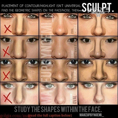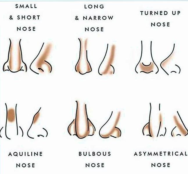 کانتورینگ بینی بسیار مهم است. چرا که بینی در وسط چهره شما قرار گرفته است و در صورت اشتباه کانتور کردن آن ممکن است دید بسیار بدی به کل آرایش شما بدهد. بر اساس اینکه فرم بینی هر کس با فرد دیگری فرق میکند بنابراین کانتور کردن بینی هر فرد نیز با دیگری متفاوت است. شما باید با توجه به فرم بینی خود آن را کانتور کنید. در زیر فرم کانتور کردن بینی های مختلف را ببینید :