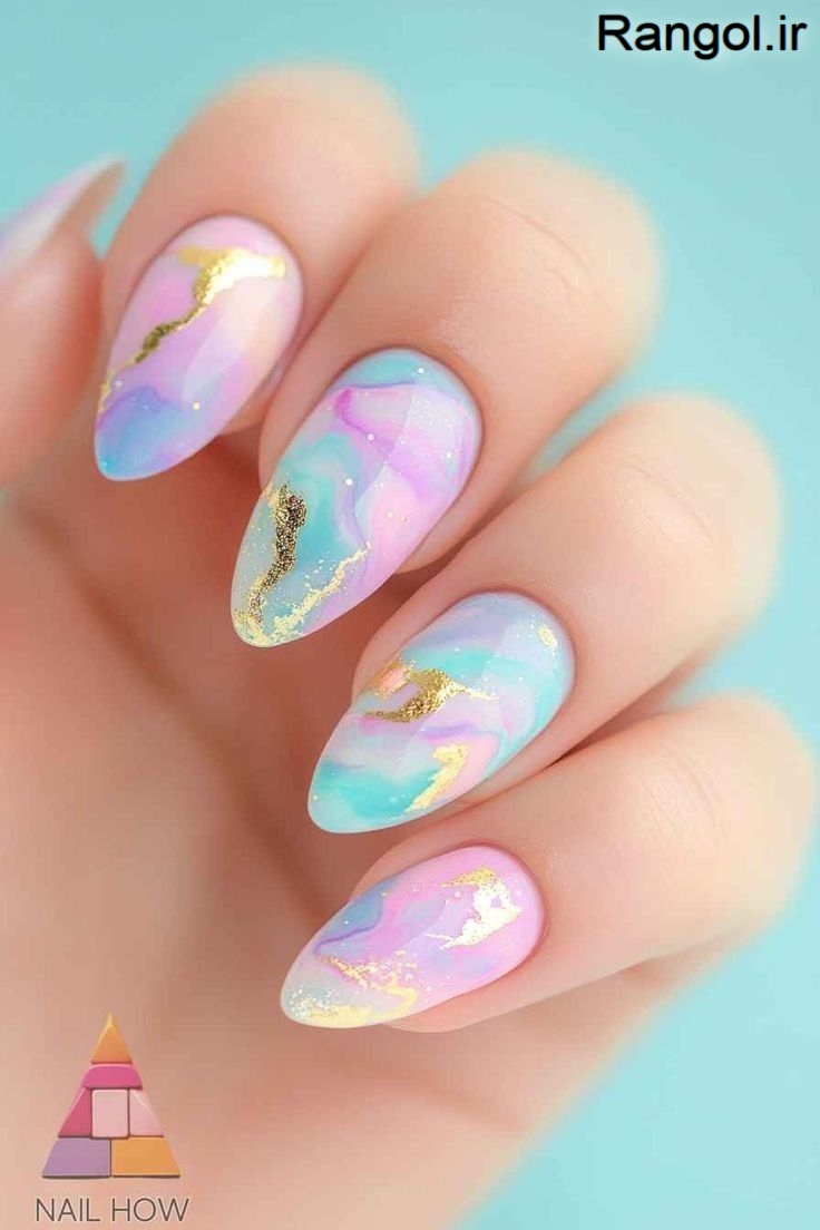 اگر دنبال طراحی مدرنتر هستید، میتوانید از تکنیک مرمری با رنگهای شاد مثل فیروزهای و نارنجی استفاده کنید.