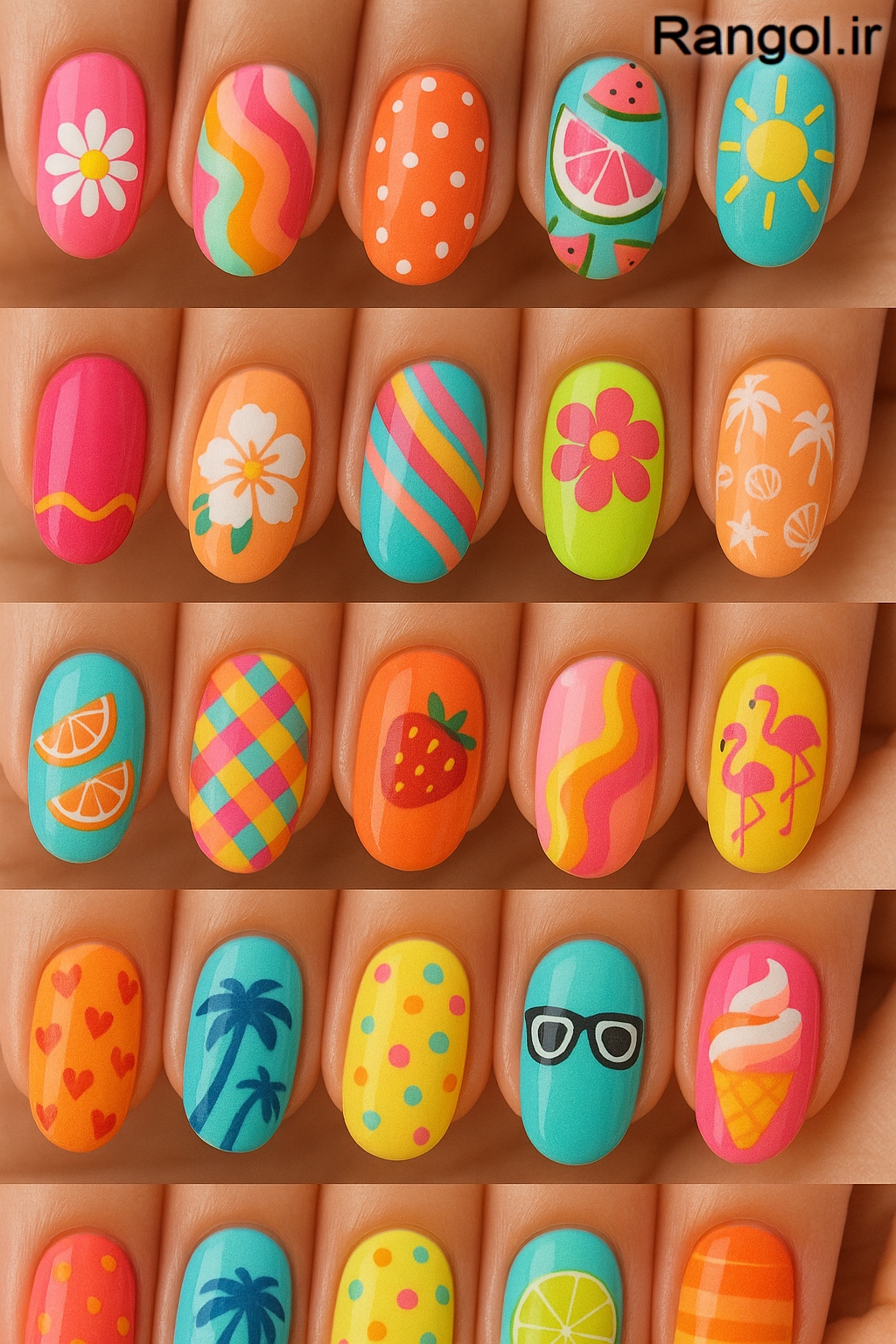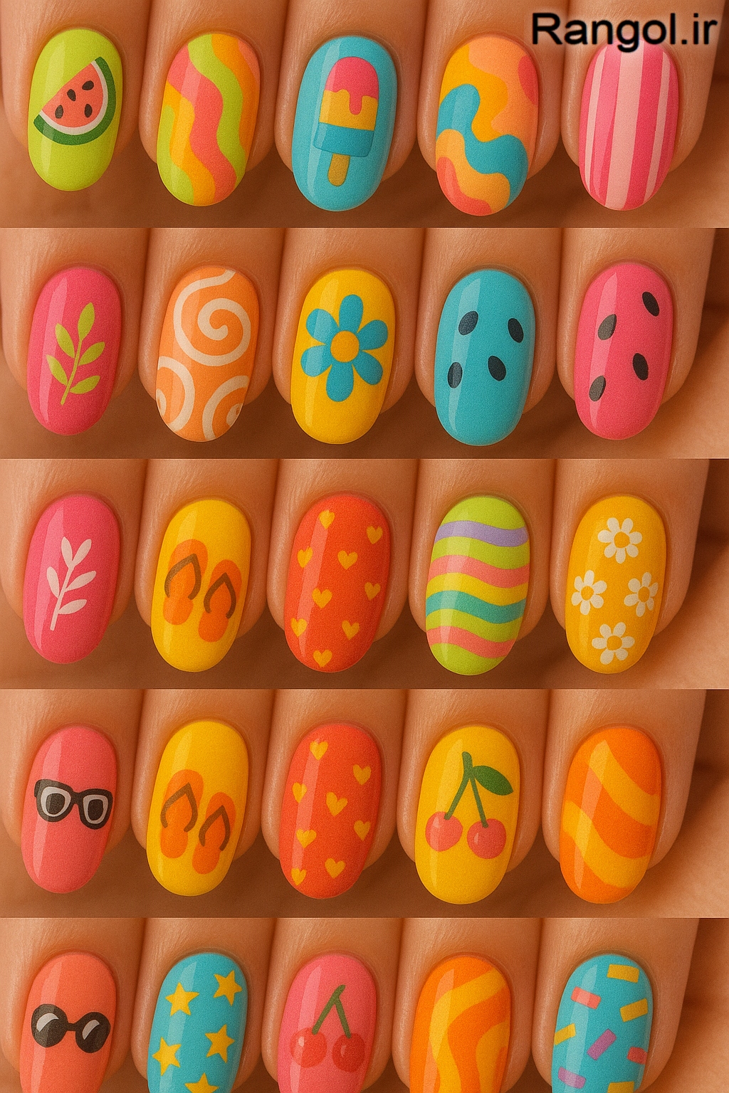 طراحی ناخن تابستانی با رنگهای شاد؛ ایدههای جذاب برای درخشش در روزهای گرم!