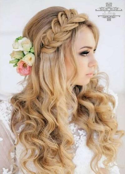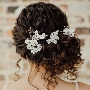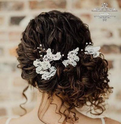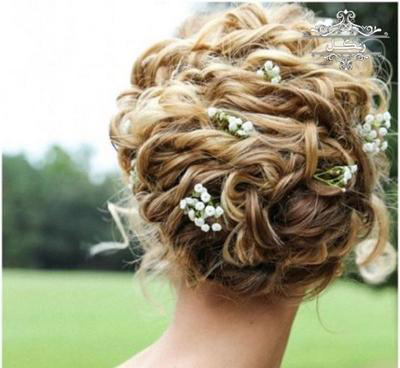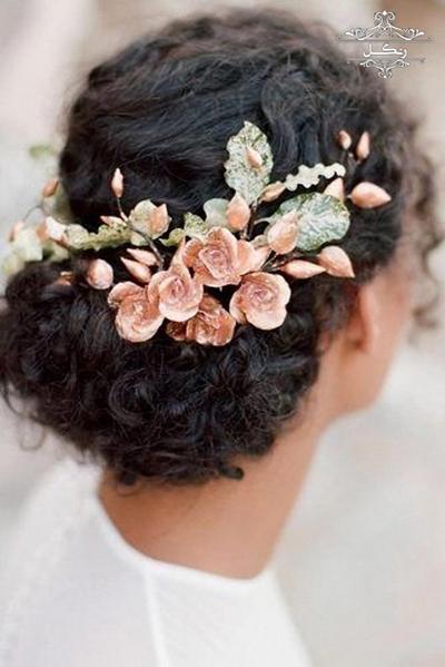 برای شینیون موهای فر از ریسه و گل استفاده کنید