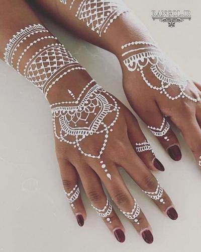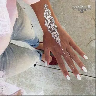 تاتو کردن یا همان خالکوبی بصورت دائم و همیشگی روی بدن میماند اینکار هم خوبی دارند و هم بدی. اکر نقش آن را دوست نداشته باشید تا آخر عمر با شما خواهد ماند و پاک نخواهد شد مگر با روش های ریسک دار. نکته منفی بعدی تاتو کردن درد آن است . با اینکه از بی حس کننده ها استفاده میشود اما باز درد تاتو کردن بر روی بدن بسیار زیاد است. بنابراین بعضی ترجیح میدهند از نقش حنا استفاده کنند. نقش حنا نیز مزایا و معایبی دارد . مزیت آن بدون درد بودن آن است و همچنین هر وقت پاک شد میتوانید نقش دیگری بکشید و از طرح آن خسته نمیشوید و اگر آن را دوست نداشتید جای نگرانی نیست چون بعد از مدتی پاک میشود. حنا در رنگ های مختلفی نیز وجود دارد. حنا مشکی ، حنا قرمز ، حنا سبز ، حنا سفید و حتی حناهایی به رنگ های دیگری نیز به بازار راه یافته است که حنا خالص نیستند و ناخالصی دارند بنابراین با احتیاط و به ندرت از حناهای رنگی استفاده کنید. در این پست برای شما مدلهایی از نقش حنا مشکی و سفید گذاشته ایم که بسیار زیبا و دلبرانه هستند.