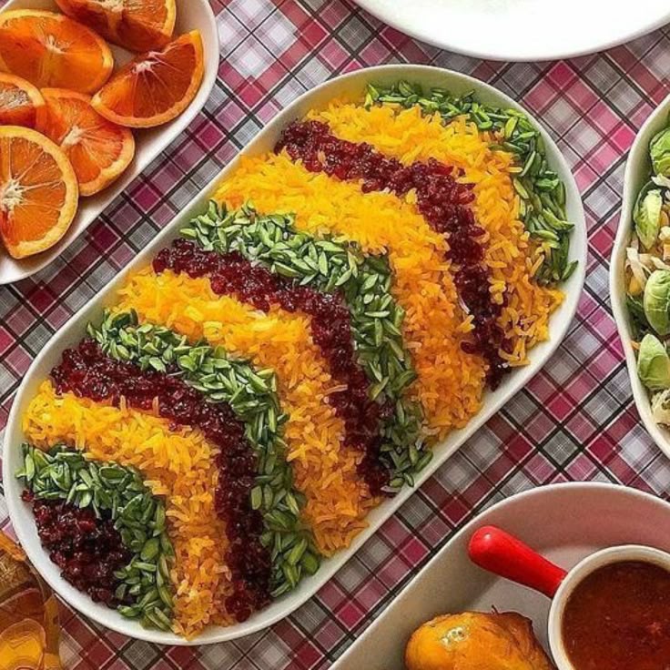 یکی از روشهای جذاب برای تزیین برنج، ترکیب چند رنگ در یک دیس است. به این صورت که برنج سفید، زعفرانی، قرمز (با لبو) و سبز (با شوید) را به صورت لایهای در دیس قرار دهید تا جلوهای رنگارنگ و زیبا داشته باشد. این روش معمولاً در مراسمهای خاص و سفرهآراییهای حرفهای کاربرد دارد.