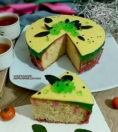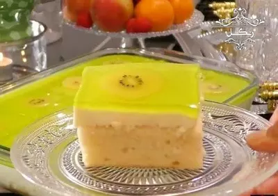 *دوستان من چون وسط کیکم کمی حالت برجستگی داشت یک بسته ژله سبز با یک و نیم لیوان آبجوش بنماری واستفاده کردم تا قسمت کناره ها را با سطح وسط یکسان کنم. پس ازاینکه ژله کاملا بسته شد نصف بسته کرم کارامل را با1/2لیوان شیرمخلوط و کمی بجوشانید و پس از سرد شدن کامل روی ژله بریزید، کیک را در یخچال به مدت دو سه ساعتی قرار دهید تا کاملا ببندد.