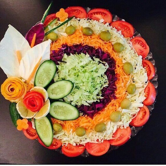 تزیین غذا و سالاد از آن هنرهایی است که هر کدبانوی ایرانی میخواهد آنرا برای نزدیکان و مهمان هایش نشان بدهد. اکثر خانم های عزیز فکر میکنند این کار به وقت و خلاقیت و هزینه زیاد نیاز دارد در حالیکه با مشاهده و الگو گرفتن از نمونه های زیر می توانید به سادگی و با کمی تمرین یک سفره و غذای بسیار زیبا برای عزیزانتان آماده کنید . یکی از راه هایی که میتوانید به فرزندانتان انگیزه بدهید تا از سبزیجات و سالاد بیشتر استفاده کنند این است که آنها را تزیین کنید تا بچه هایتان تمایل بیشتری برای خوردن سالاد و سبزیجات داشته باشند.