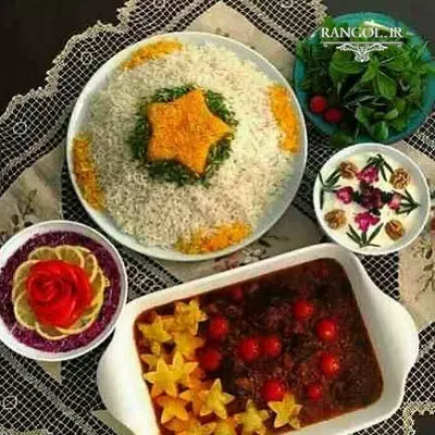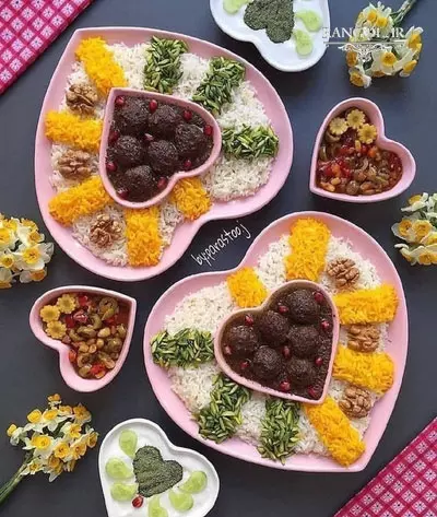 در زیر چند نمونه تزیین پلو و برنج مجلسی را میبینید :