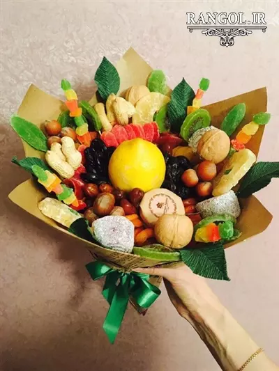 مدل های جدید تزیین میوه و آجیل شب یلدا در باکس و دسته گل