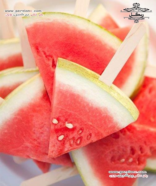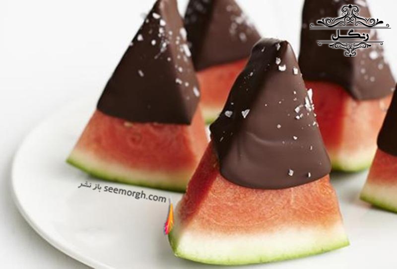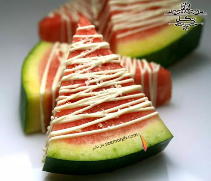 - برش هندوانه به شکل مثلثی و چیدن آن‌ها در سینی به صورت مرتب و رنگارنگ