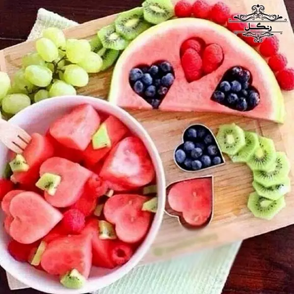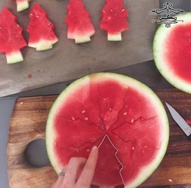 - برش هندوانه به شکل قلب یا ستاره با استفاده از قالب‌های مخصوص شیرینی‌پزی