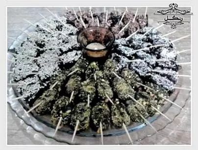 معمولا برای تزیین خرما از چند مورد متداول استفاده میشود مثل :