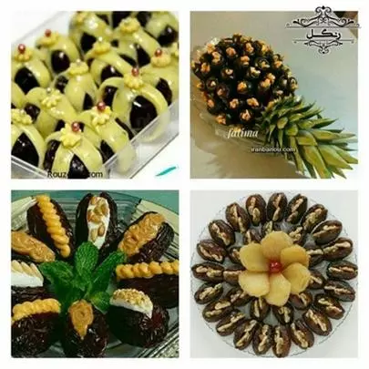 خرما این میوه شگفت انگیز که بارها نام آن در قرآن آمده است، زینت بخش بسیاری از سفره ها و مراسمات ایرانی و اسلامی است. خرما در کنار زولبیا و بامیه قابل توصیه ترین و مفید ترین غذا برای افطاری و ماه رمضان است و در مجالسی مثل مجلس ختم و ترحیم کام تلخ عزادارن را شیرین میکند ، همچنین در سفره ها و آیین های مذهبی مثل روضه هااغلب در کنار چای دلچسب روضه سرو میشود و در مزار رفتگان ، بازماندگان را به خواندن فاتحه ای دعوت میکند .بنابراین تزیین خرما را یاد بگیرید و از عکس های زیر ایده بگیرید.