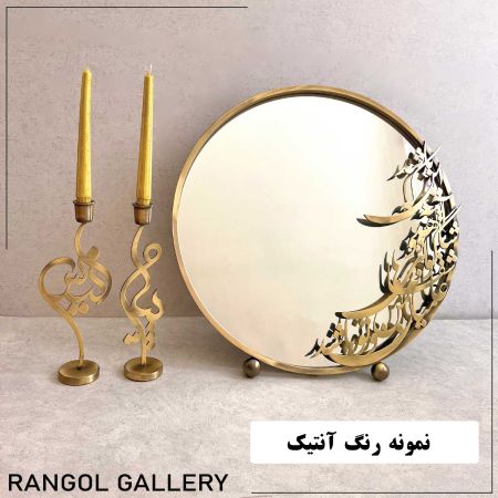 - آینه شمعدان آنتیک این رنگ خیلی خاص اختصاصا در رنگل گالری تولید میشه. که رنگی بین طلایی و برنز هست و حالت سایه دار داره.