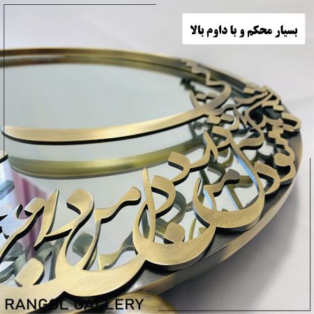 آینه شمعدان های کالیگرافی نسل جدید آینه شمعدان هستند که توسط برند رنگل گالری ( برند سایت ما ) تولید میشوند. این آینه شمعدان های جدید به این صورت است که اسم شما بصورت شمعدان طراحی و تولید میشود و برای آینه نیز شعر دلخواه شما روی آینه کار میشود. رنگ های این آینه شمعدان ها آبکاری رنگ ثابت می باشد و بسیار آینه شمعدان های زیبایی برای عروسی و عقد و بله برون می باشند. آینه شمعدان عروس جدید و خاص هستند که قطعا یک اثر هنری جاودان در خانه شما می باشد.