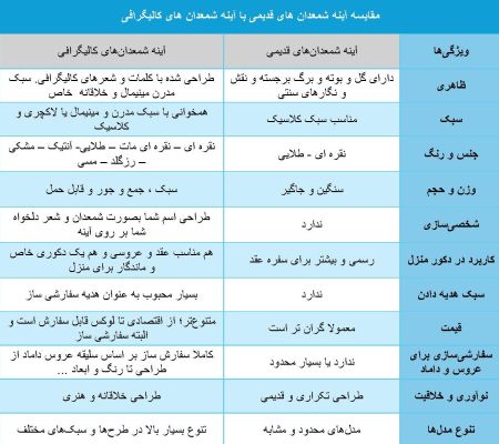 مقایسه آینه شمعدان های قدیمی بازاری با آینه شمعدان های کالیگرافی مدل جدید