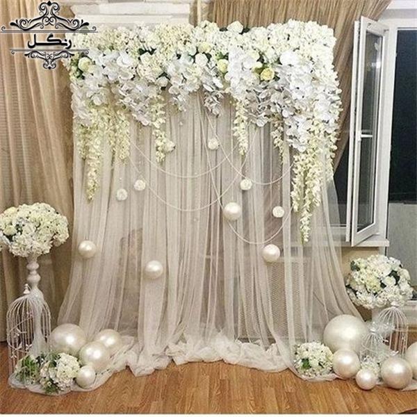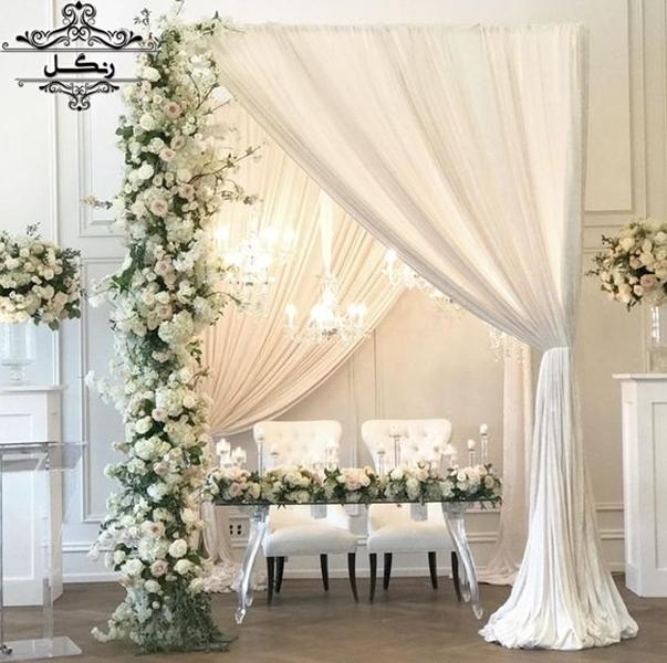 تزیین پشت سر ساده جایگاه عروس و داماد با ساتن و تور