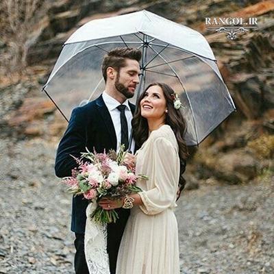 برای ژست عروس داماد با عکس مدل های مختلفی وجود دارد .میتوانید هر استایلی که دوست دارید را داشته باشید و یه چتر مناسب با لباس بگیرید و در یکی دو تا از عکس هایتان ازش استفاده کنید. در زیر نیز چندین مدل ژست مختلف با چتر را برای شما گردآوری کرده ایم. برای انتخاب چتر ، میتوانید یک چتر به رنگ سفید یا گل گلی برای عروس و یکی با رنگ مشکی و یا بی رنگ برای داماد انتخاب کرد. قطعا آقای داماد نیز باید از خیس شدن زیر باران در امان باشد.