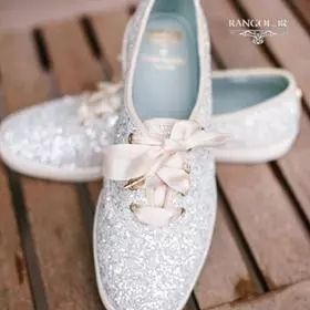 قطعا اگر شما هم جزو عروس خانوم هایی هستید که پوشیدن کفش پاشنه بلند برایتان سخت است و میخواهید شب عروسی تان راحت باشید باید از کفش کتانی و تخت اسپرت استفاده کنید. در این حالت هم پاهایتان اذیت نمیشود هم در طول روز عروسی تان خیلی کمتر خسته میشوید. یکی از گزینه ها برای کفش راحت عروسی،کفش های اسپرت و کتانی است. البته نه کفش های کتانی با رنگ های مختلف. کفش های کتانی سفید تزیین شده با تور و گیپور و مروارید و... برای عروس.