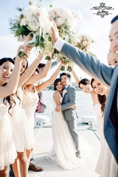 مدل های عکاسی عروس و داماد با ساقدوش ها | نمونه ژست ساقدوش ها