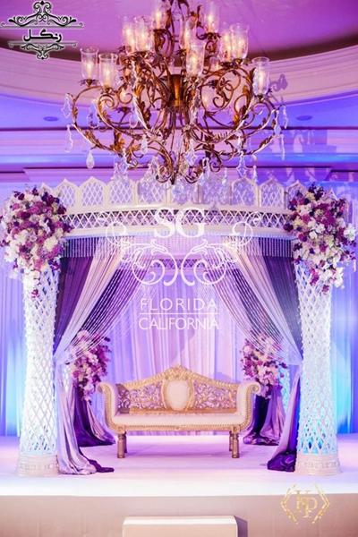 جایگاه عروس و داماد با نورپردازی یاسی بنفش