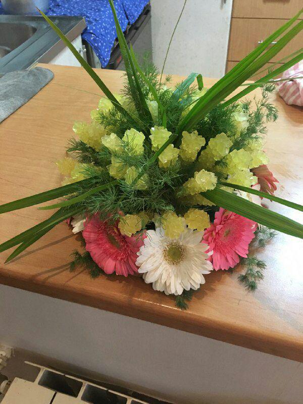 2. استفاده از گلهای مصنوعی: شاخههای نبات را با گلهای مصنوعی کوچک مانند گل رز یا شکوفههای بهاری تزئین کنید تا ظاهر آنها طبیعیتر و دلپذیرتر شود.