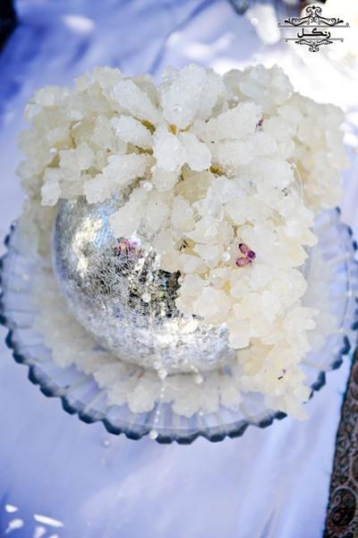 4. قرار دادن نبات در ظروف کریستالی: شاخههای نبات را در ظروف کریستالی یا شیشهای شیک قرار دهید تا ظاهری مجلل و کلاسیک به سفره عقد ببخشد.