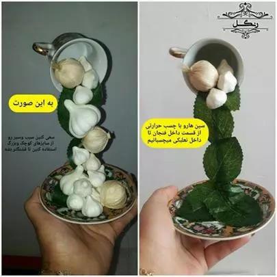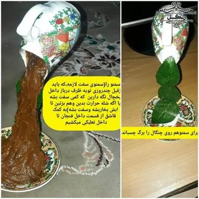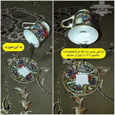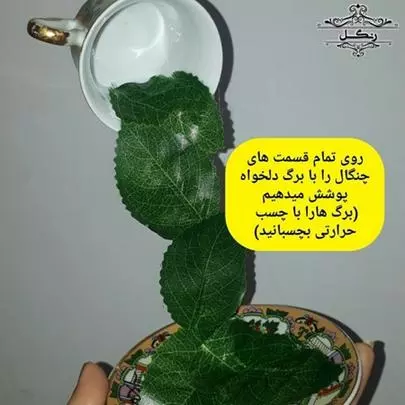 در این آموزش ، متن راهنما روی تصویر نوشته شده است. میتوانید عکس ها را نگاه کنید و آموزش را تصویری ببینید. برای درست کردن سفره هفت سین معلق یا آبشاری کافیست ابتدا چنگال ها را از سر و دسته خم کنید و ته آن را به نعلبکی بچسبانید و سرش را به فنجان و از بالا تا پایینش از برگ مصنوعی یا گل مصنوعی با چسب حرارتی بچسبانید و پر کنید تا چنگال دیده نشود و بر حسب سلیقه تان هفت سین مورد نظرتان را روی گل و برگ ها و همچنین درون نعلبکی بچسبانید. در این سفره هفت سین میتوانید خلاقیت خود را نیز بکار گیرید ، میتوانید بجای فنجان یا نعلبکی هر آنچه که دوست دارید بگذارید. مثلا دیده شده بجای فنجان ، شیر آب یا قوری میگذارند یا به جای گل و برگ مصنوعی از کریستال استفاده میکنند و یا اصلا تمام چنگال را با وسایل سفره هفت سین میپوشانند و از گل و برگ مصنوعی استفاده نمیکنند. تمامی اینها به سلیقه و خلاقیت شما بستگی دارد. در اینجا اصول کلی درست کردن سفره هفت سین معلق و آبشاری را به شما آموزش میدهیم.