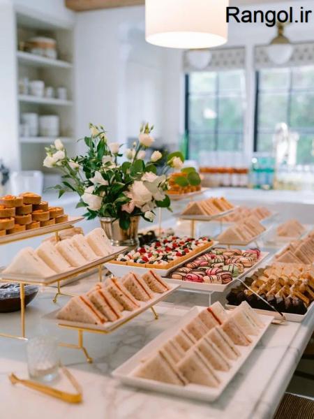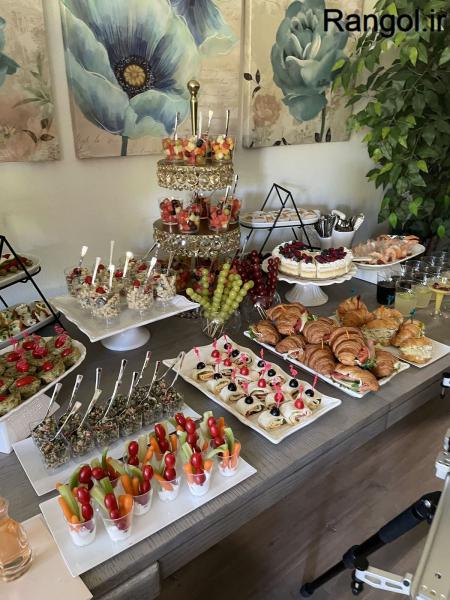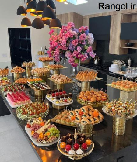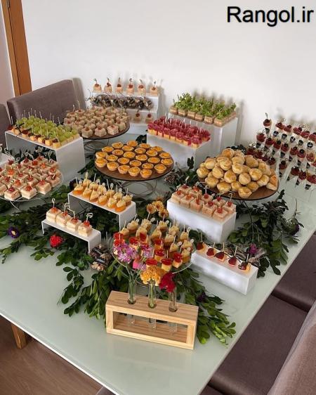 تمام این خوراکیها باید با سینیها و ظرفهای هماهنگ و زیبا سرو شوند تا حس لوکس بودن میز حفظ شود.