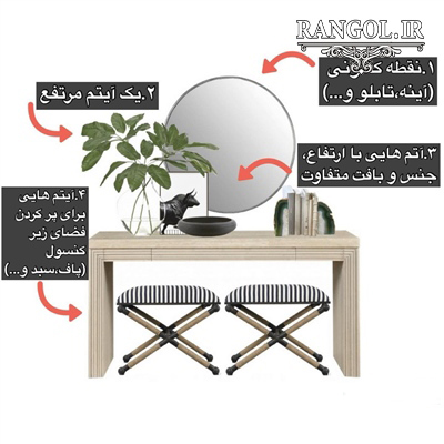 - هرگز کنسول را خالی و بدون اشیا تزیینی و دکوری رها نکنید و حتماً با اشیا دکوری آن را تزیین کنید
