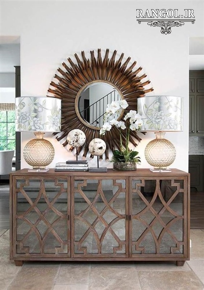 - اگر کنسول شما آیینه ست ندارد می توانید برای روی کنسول از ساعت، تابلو نقاشی یا قاب عکس بزرگ و یا از آینه های مدل دار استفاده کنید.