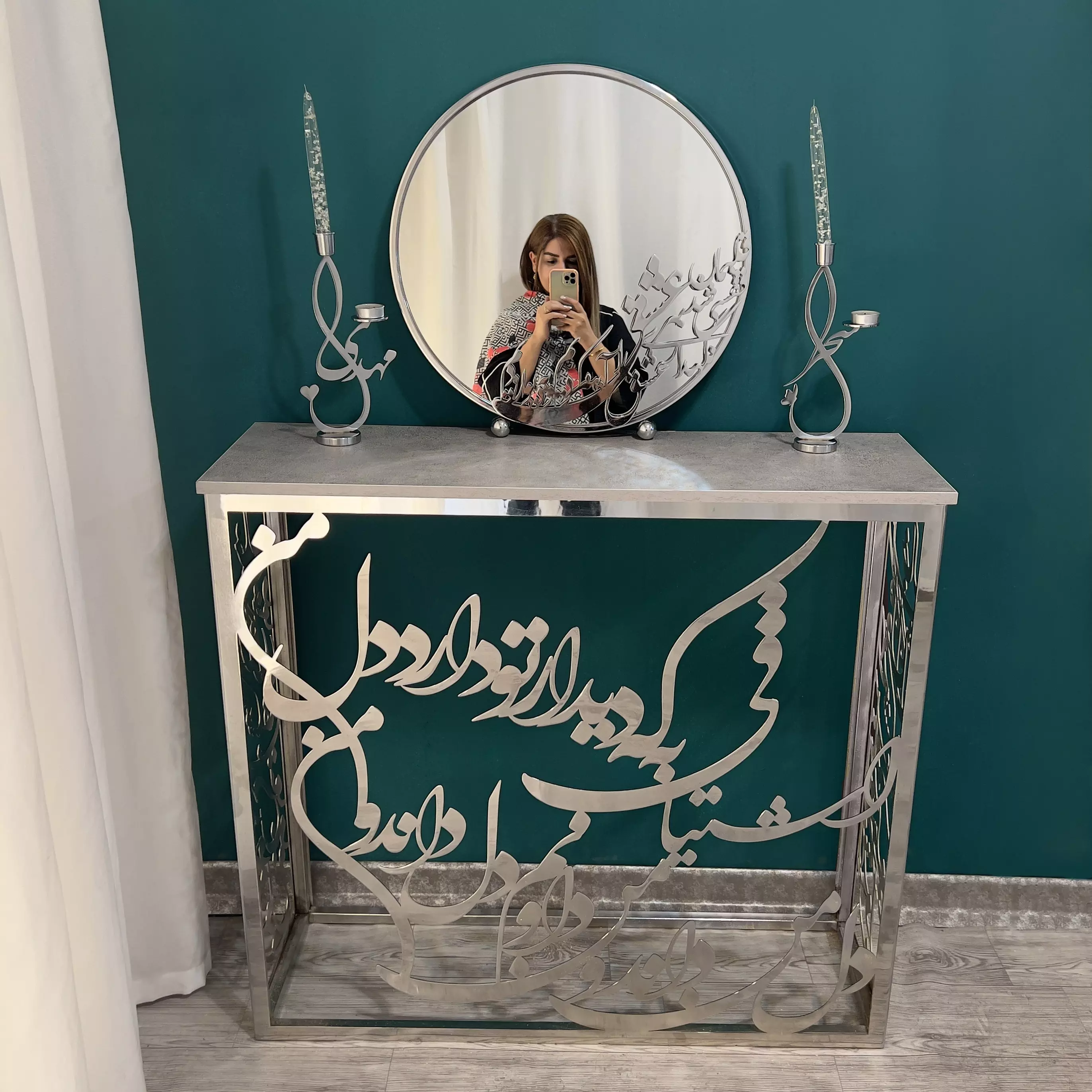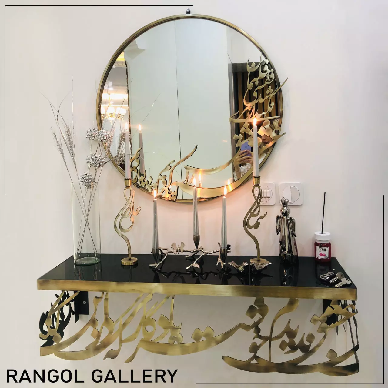رنگل گالری به تازگی نسل جدیدی از کنسول ها را به بازار معرفی کرده است به نام کنسول کالیگرافی که با شعر دیزاین شده اند. این کنسول ها را میتوانید همراه با آینه و شمعدان نیز تهیه کنید و یک ست کامل سفارش دهید. کنسول های کالیگرافی در دو نوع کنسول دیواری و کنسول پایه دار هستند . در زیر نمونه هایی از کنسول کالیگرافی را مشاهده میکنید.
