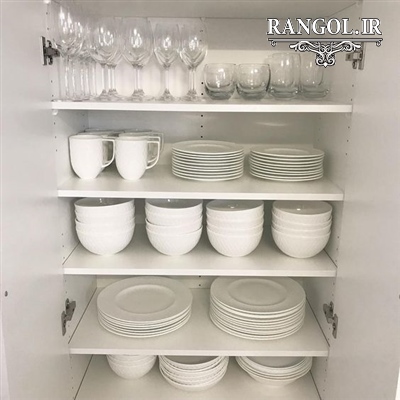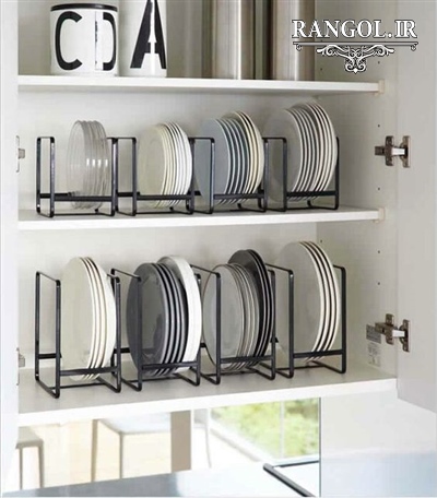 - - چیدمان دیس یا بشقاب های پهن باید به شکل افقی باشد. دیس ها و بشقاب های پهن را می توانید در طبقات کابینت گذاشته و در جلوی آن ها از نگهدارنده ها استفاده نمایید.