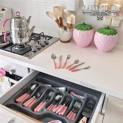 - - برای دسترسی راحت تر به ظروف روزمره، بهتر است آن ها را در کشوهای مخصوص قرار دهید، تا به راحتی قابل دسترسی باشند. تقسیم کننده های مقوایی یا پلاستیکی می توانند در این بخش به کمک شما آیند، با تقسیم کننده های ظروف هم دسترسی برایتان آسان می شود و هم عمر کابینت شما از صدمات، کاهش نمی یابد.