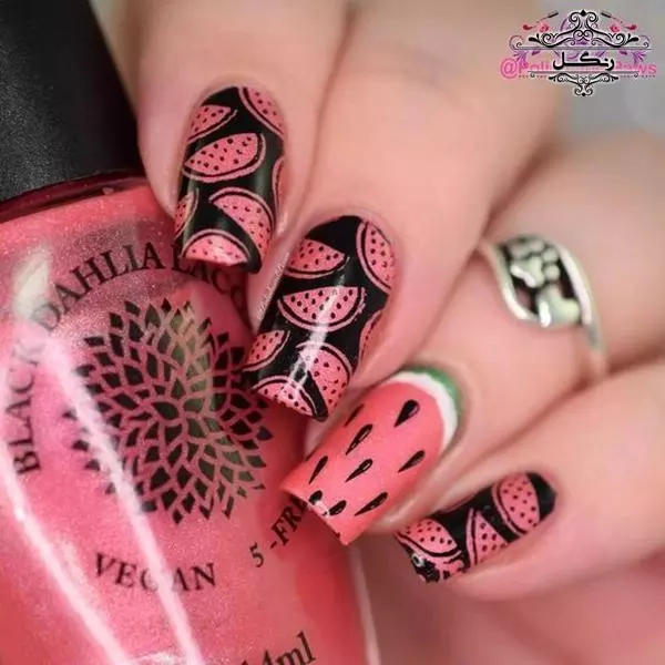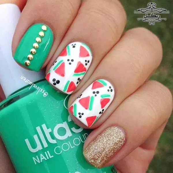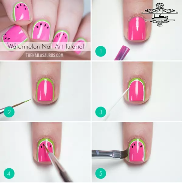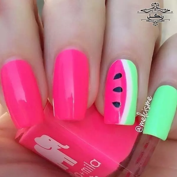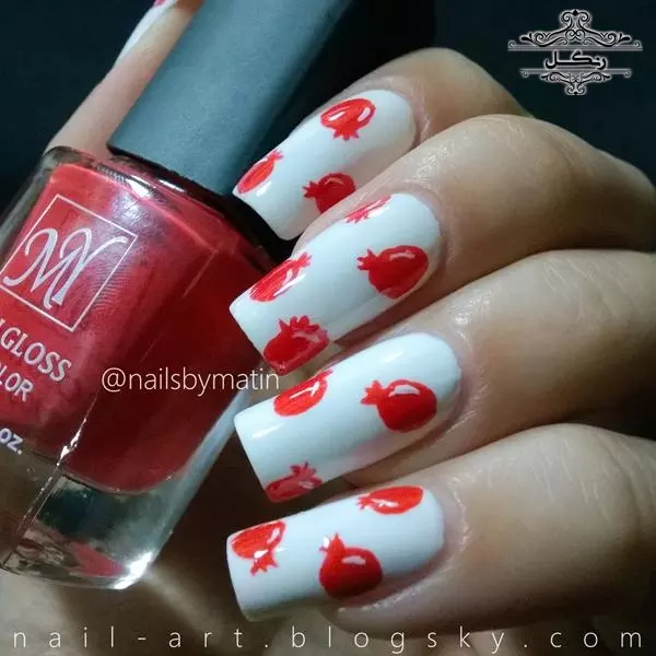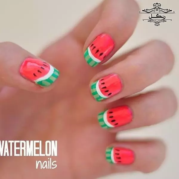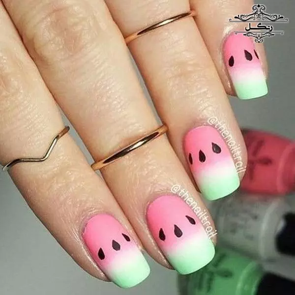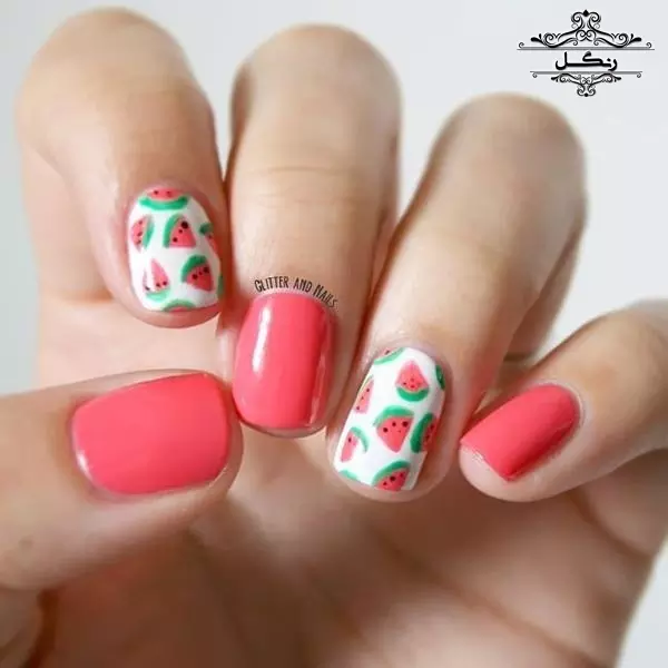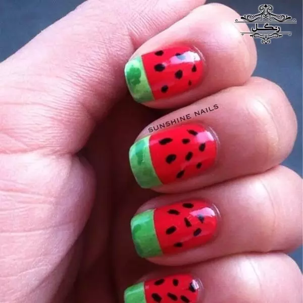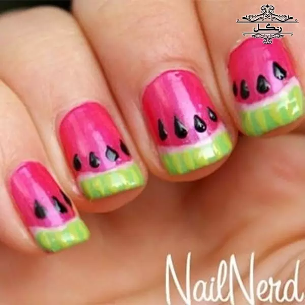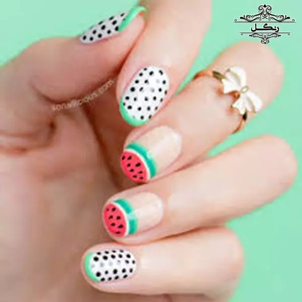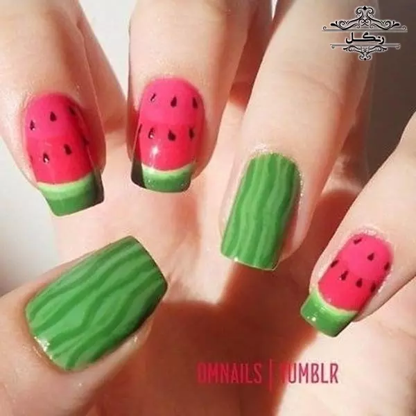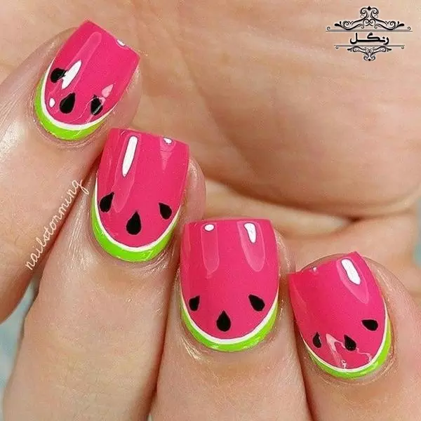 ایده های جالب و جدید طراحی ناخن به سبک یلدا به شکل هندوانه و انار