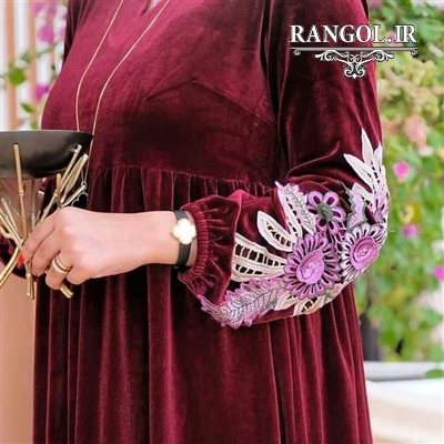 سنگ دوزی ، مروارید دوزی و گلدوزی آستین مانتو