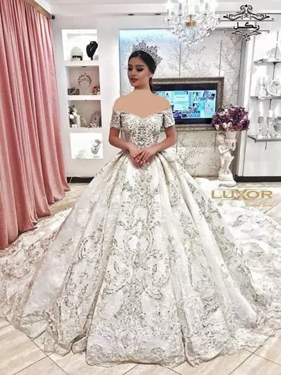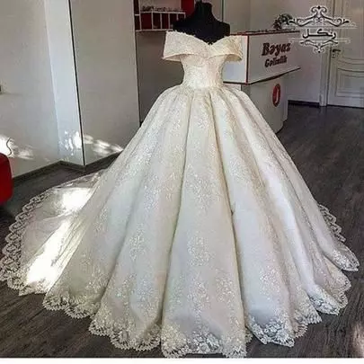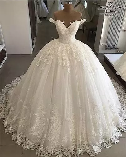 8. لباس عروس یقه دکلته (Off-the-shoulder)