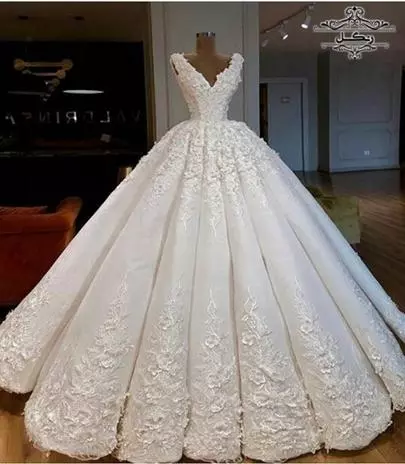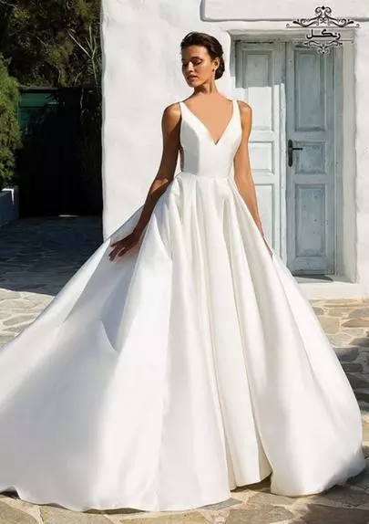 3. لباس عروس یقه V (V-neck)