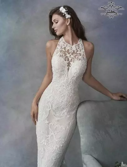 لباس عروس یقه هالتر شیک جدید دورگردنی