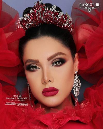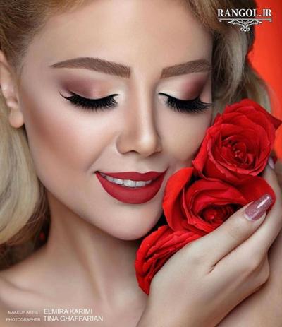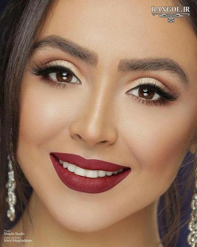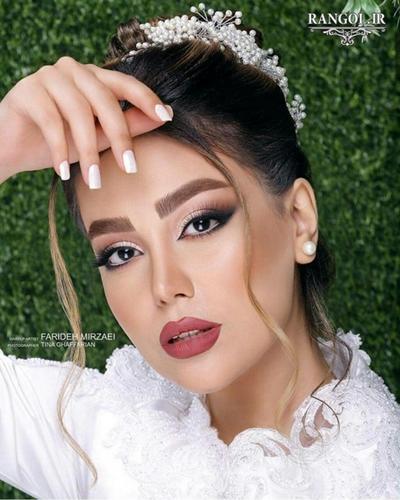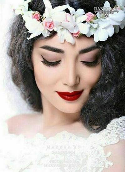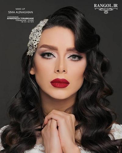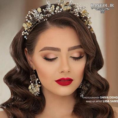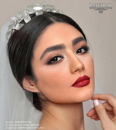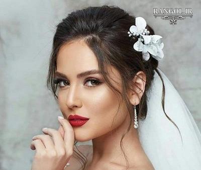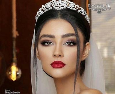 مدل آرایش عروس با رژ پر رنگ