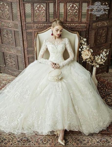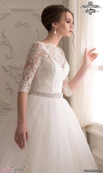 مدل لباس عروس با آستین گیپور و دانتل جدید ایرانی