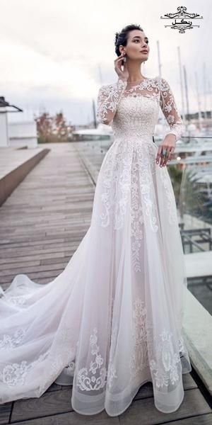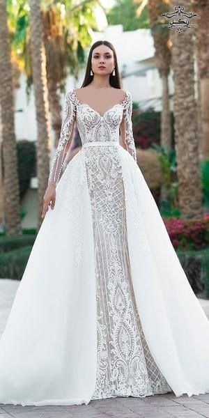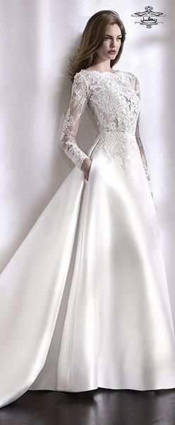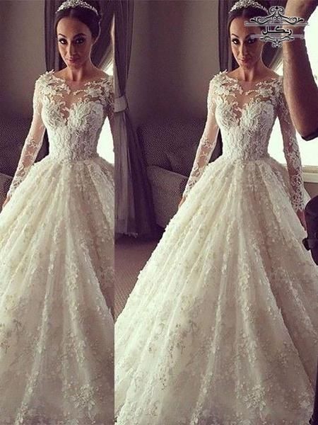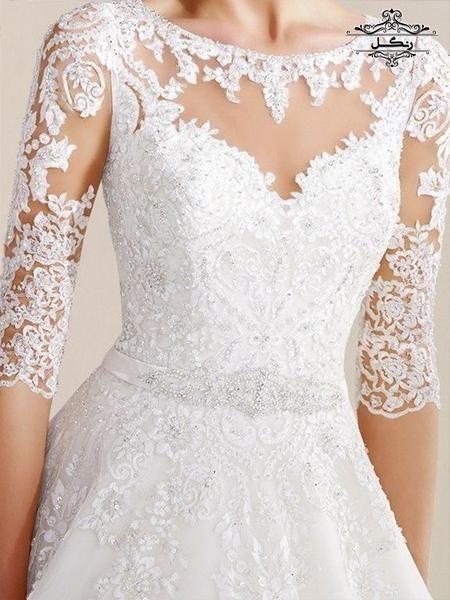 مدل های شیک و جدید لباس عروس با آستین گیپور و دانتل کار شده