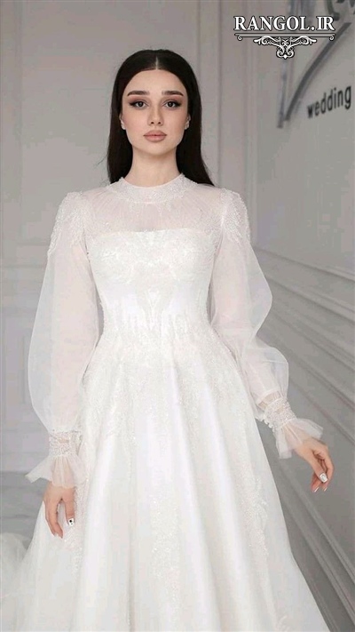 مدل لباس فرمالیته عروس آستین دار و پوشیده خاص و شیک