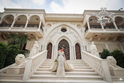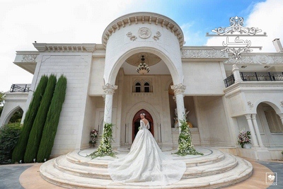عکاسی از عروس و داماد در داخل و محوطه تالار عروسی