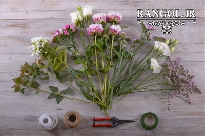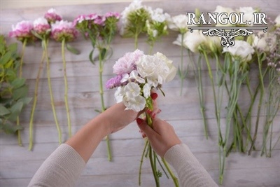 در ابتدای کار تصمیم بگیرید که میخواهید دسته گلتان چه رنگی باشد ! سفید ؟ صورتی؟ گلبهی؟ بنفش؟ یک رنگ ؟ چند رنگ؟ و...