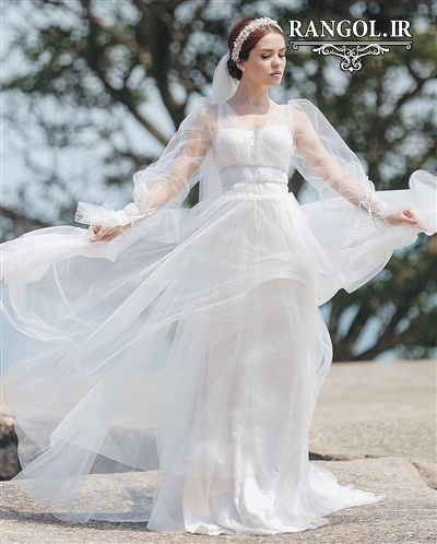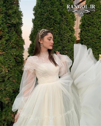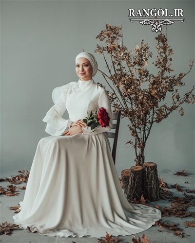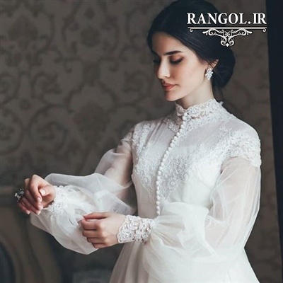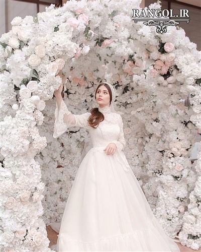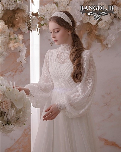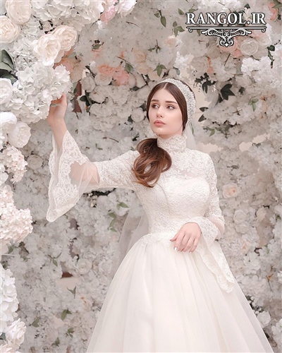 مدل لباس فرمالیته عروس آستین دار و پوشیده خاص و شیک