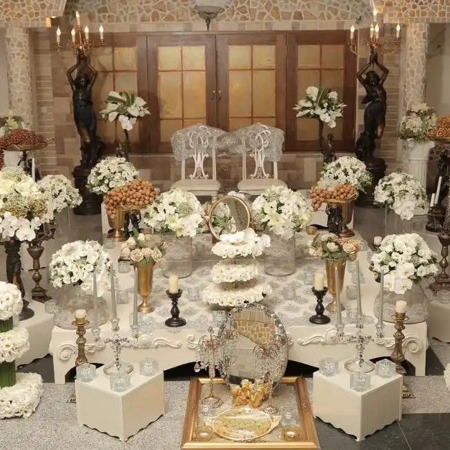 - سفره عقد مجلل و دکوراسیون شیک و متناسب با تم مراسم