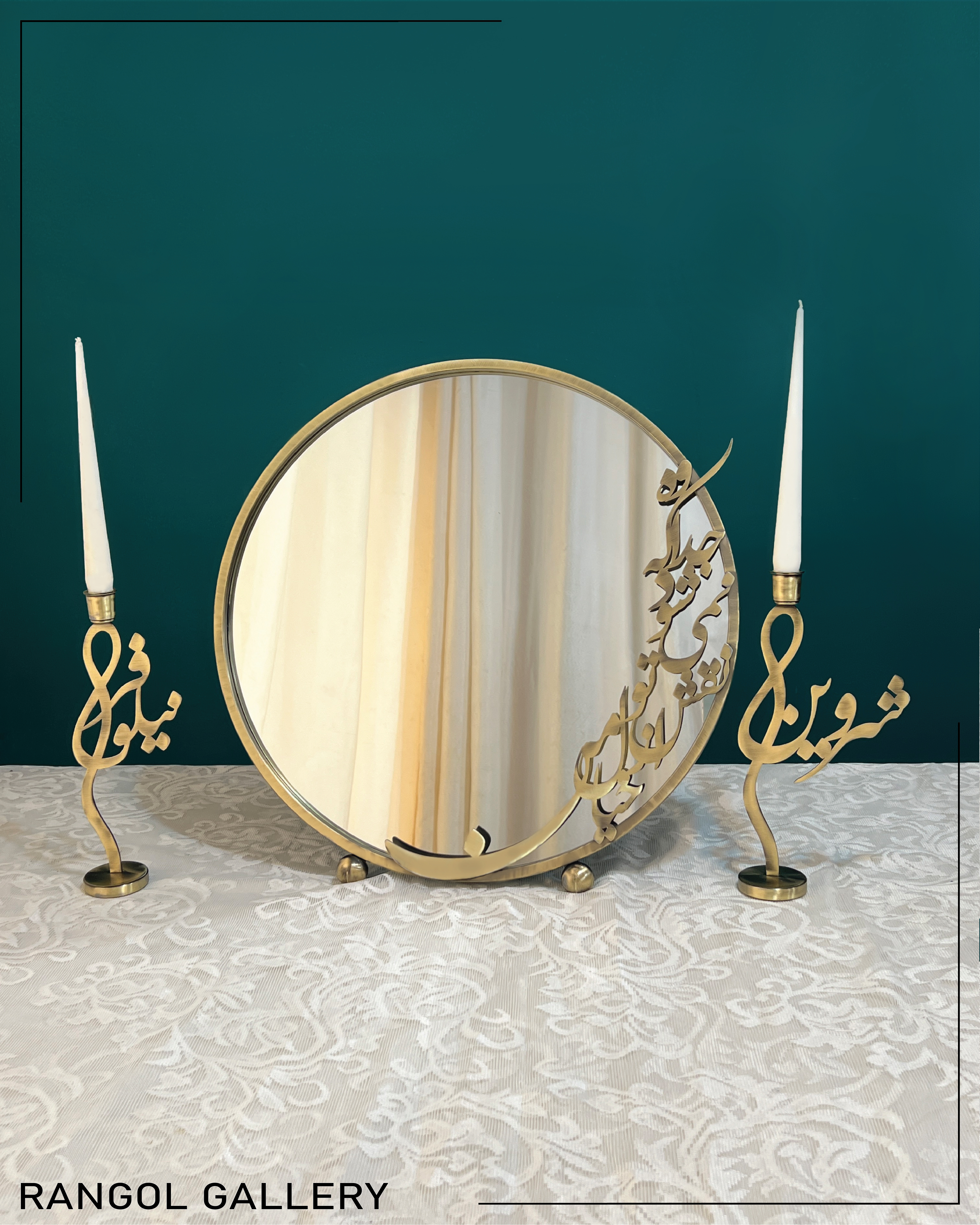 ♦️از آنجاییکه تمامی محصولات ما قابل تغییر به سلیقه شما هستند ، بعد از ثبت سفارش با شما تماس گرفته می شود و برای شما طراحی اسم شمعدان ها  و همچنین شعر آینه ارسال می شود  بعد از انتخاب توسط شما ، ساخته خواهند شد.