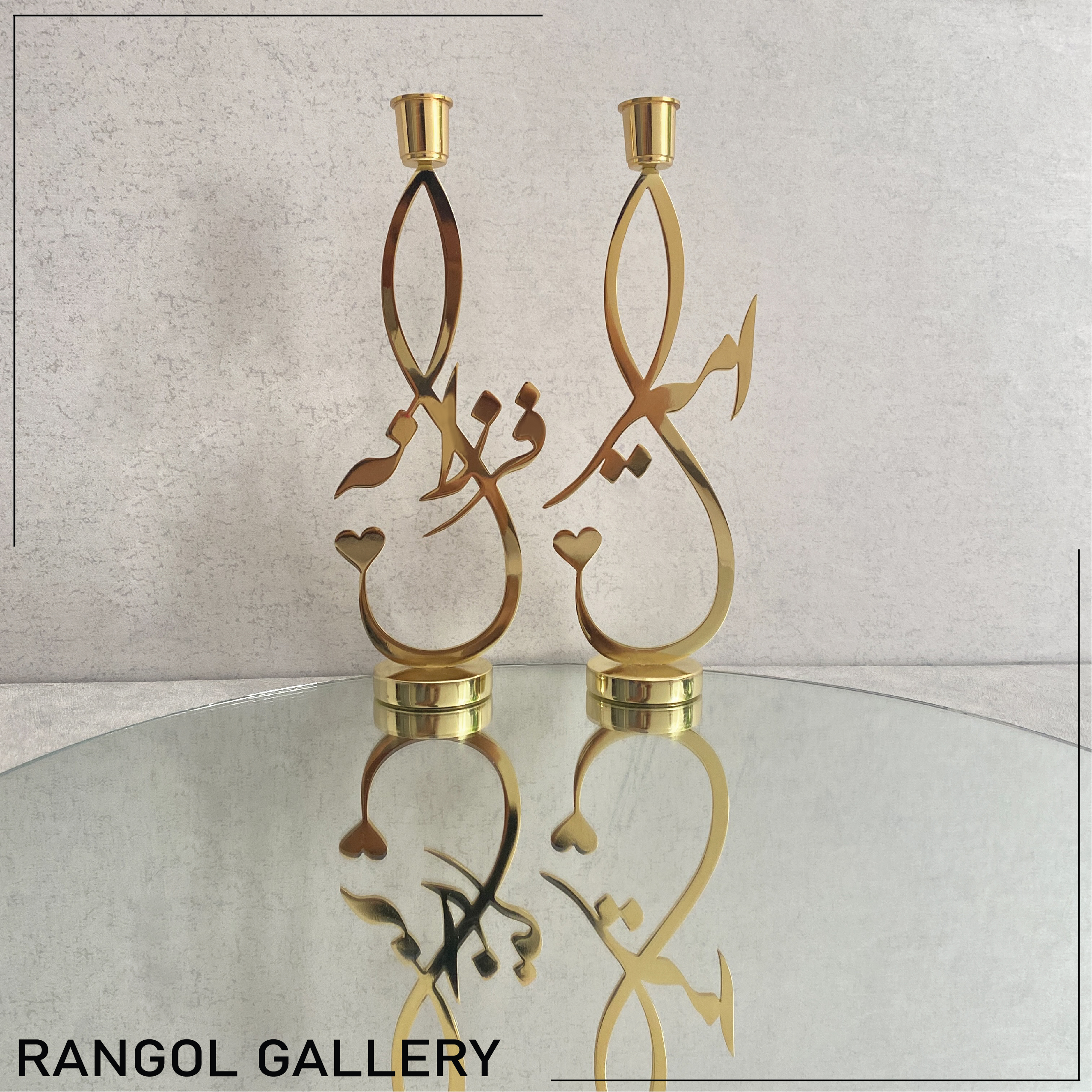 در عکس : شمعدان های اسم امیر و فرزانه به رنگ طلایی می باشد