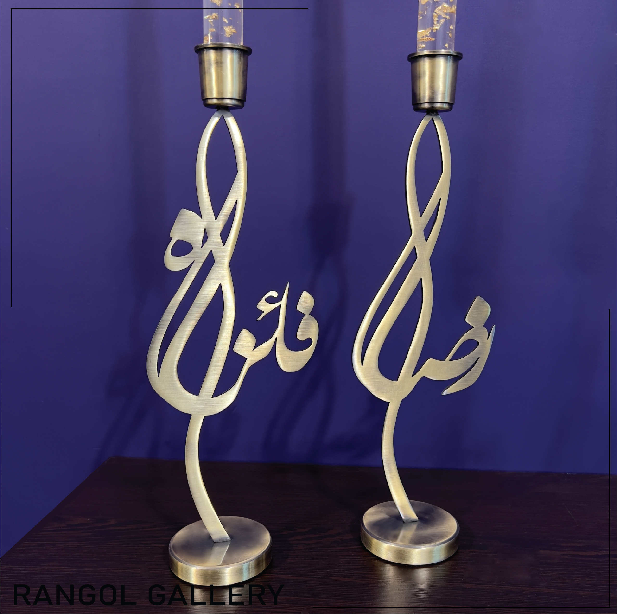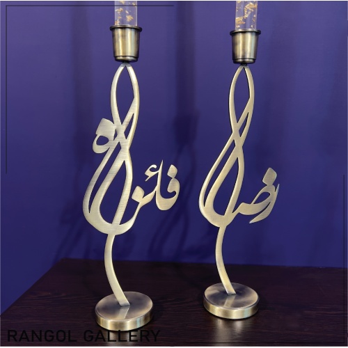 در عکس : شمعدان های اسم رضا و فائزه به رنگ آنتیک می باشد