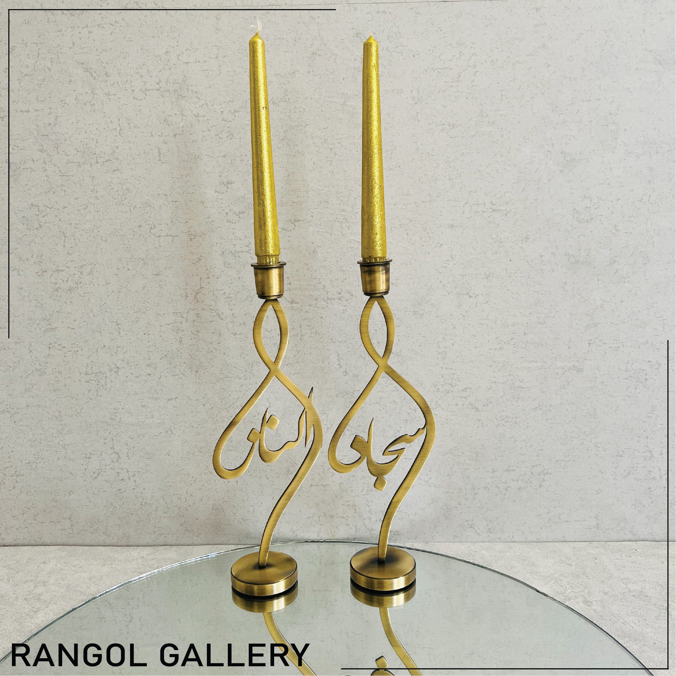 در عکس : شمعدان های اسم سجاد و الناز به رنگ آنتیک می باشد