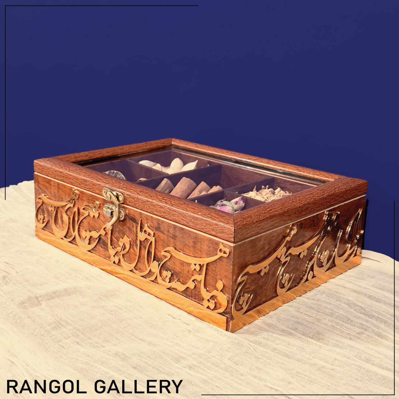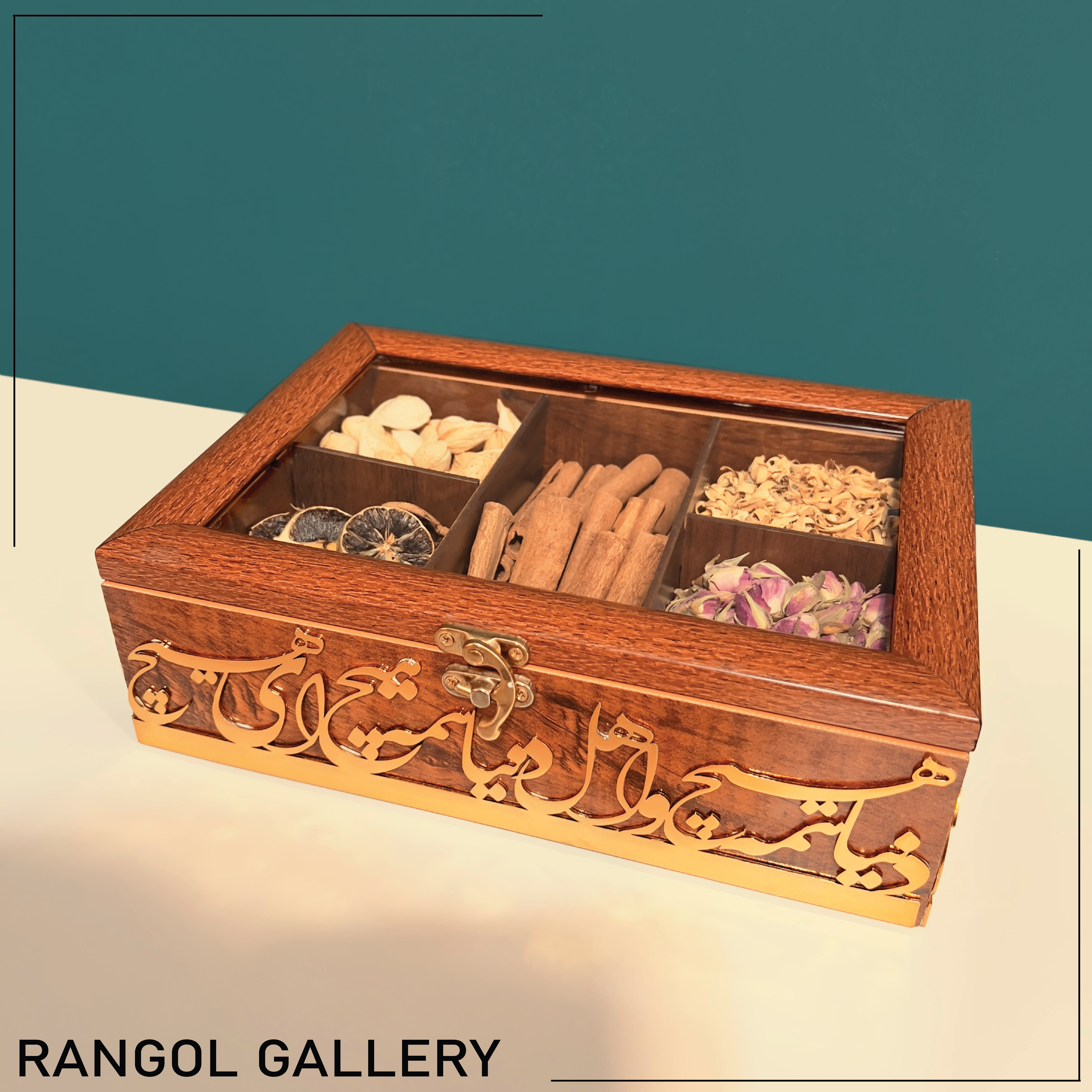 جعبه تیبگ چوبی: ✅ جعبه ۵ خانه و از جنس چوب ام دی اف می باشد✅ قسمت کالیگرافی ، آبکاری طلایی شده  قیمت : 1 میلیون و 800 هزار تومان ظرف چوبی تی بگ یا چای کالیگرافی با شعر : دنیا همه هیچ و اهل دنیا همه هیچ ای هیچ برای هیچ بر هیچ مپیچ از مولانا می باشد که روی این ظرف چوبی تیبگ کار شده است در صورتی که  ...ادامه مطلب