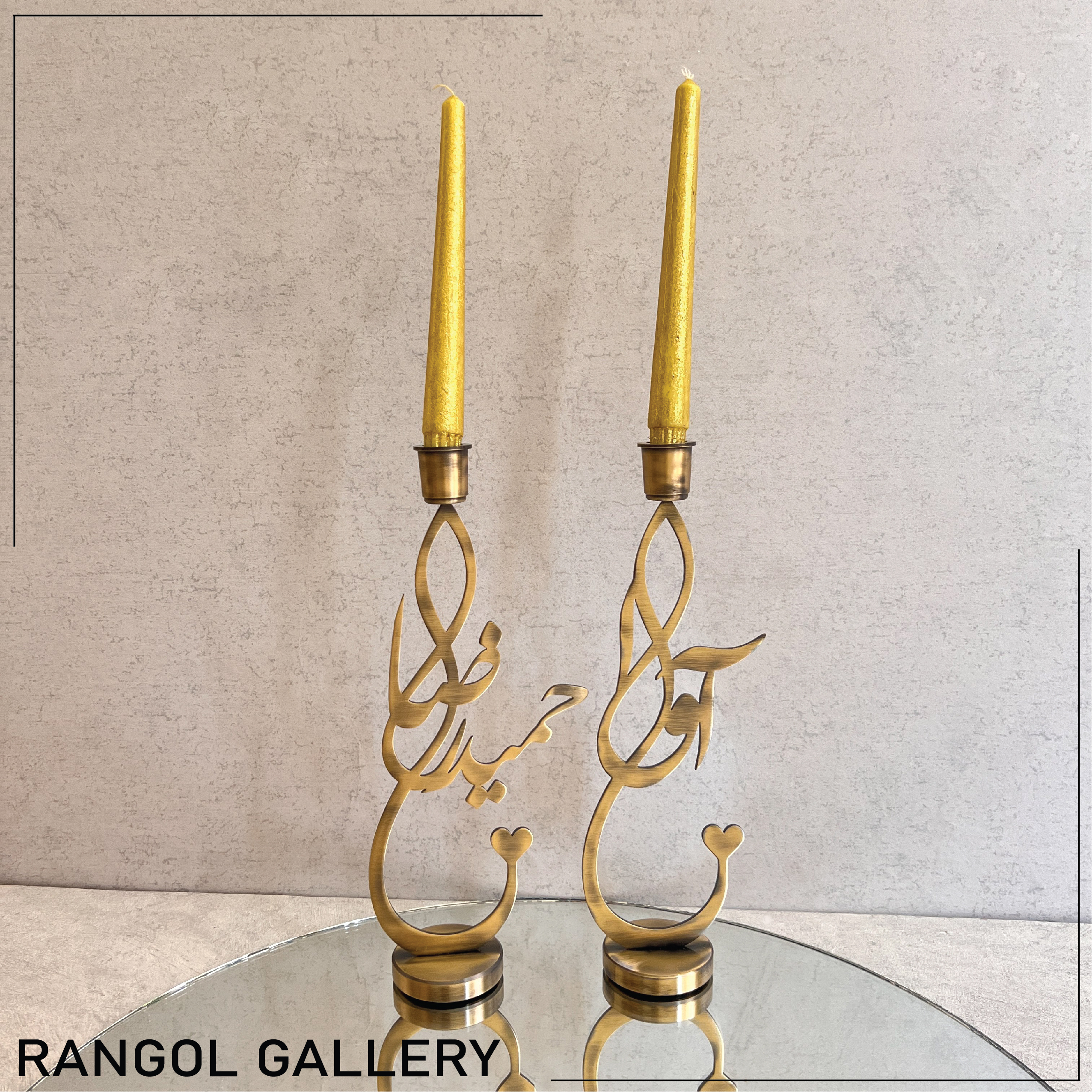 در عکس : شمعدان های اسم آوا و حمیدرضا به رنگ آنتیک می باشد